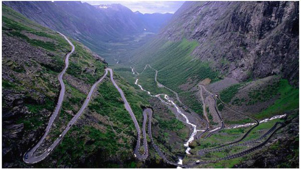 ![]() Đừng quên uống vài viên thuốc chống say trước khi lái xe vào đường Trollstigen (hay còn gọi là "Cái thang của Quỷ") ở Na Uy. Ảnh: Mark Daffey/LPI |