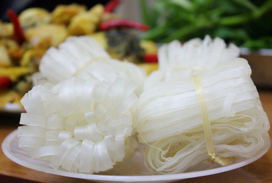 | Mỳ Chũ được chế biến từ hạt gạo Bao Thai Hồng trồng trên vùng đất đồi Chũ. Những sợi mỳ dẻo dai, đậm đà có thể làm hài lòng bất cứ thực khách khó tính nào khi thưởng thức. |