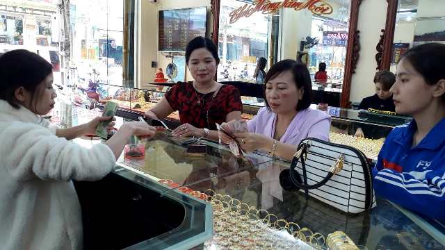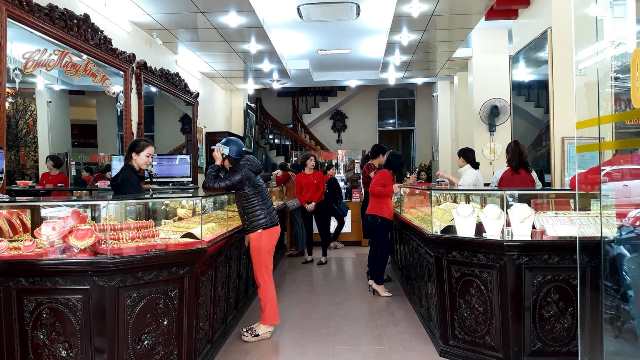 | Khách hàng vào mua vàng lấy vía ngày Thần Tài tại các của hàng. |