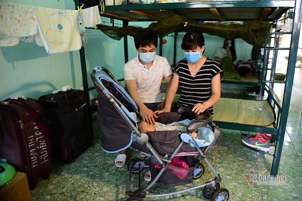 Vợ chồng anh Linh và con trai anh gần 2 tháng tuổi tại khu cách ly - Ảnh: Vietnamnet |