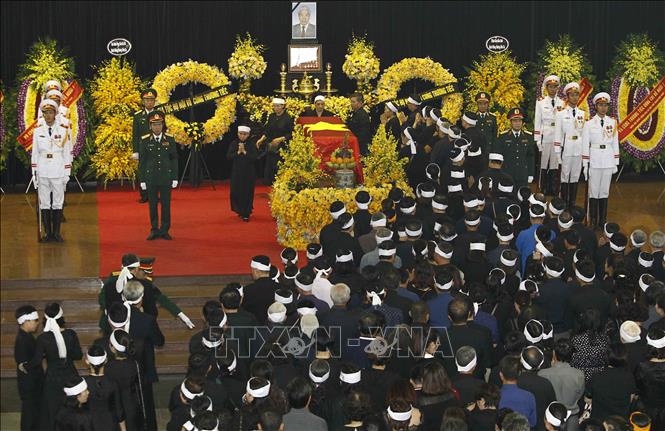 Linh cữu nguyên Tổng Bí thư Đỗ Mười quàn tại Nhà tang lễ quốc gia, số 5 Trần Thánh Tông (Hà Nội) |
