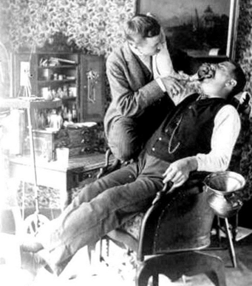 | Một nha sĩ người Mỹ đang nhổ răng cho bệnh nhân vào năm 1910. |