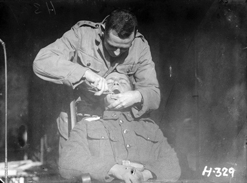 | Một người lính New Zealand đang phải nhổ răng, ảnh chụp vào năm 1917. |