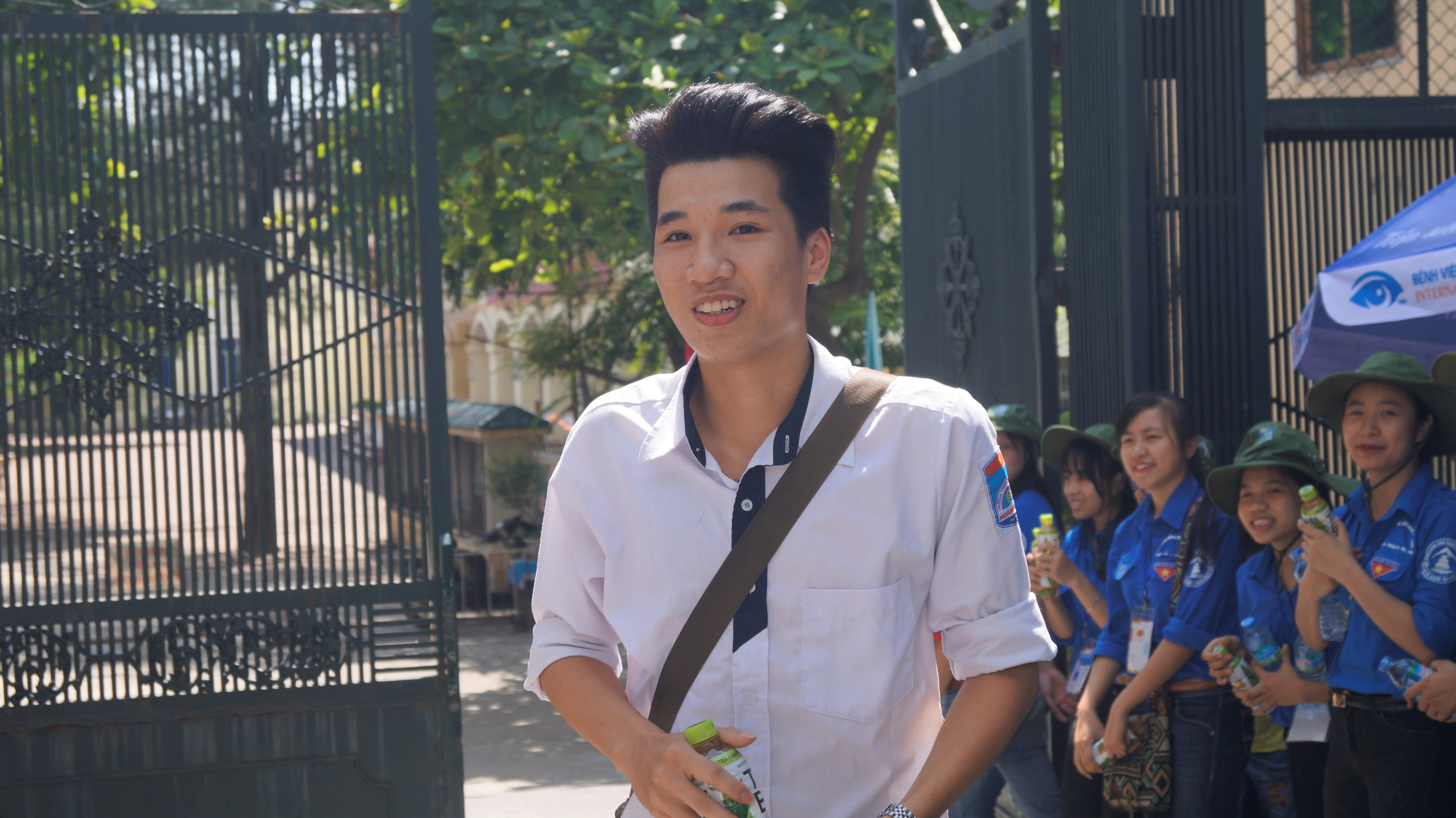 | Nụ cười, của thí sinh đầu tiên bước ra khỏi phòng thi. |