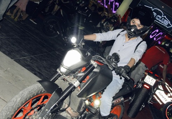 (ĐSPL) - Nhung Kate diện trang phục giản dị thường thấy và tự lái motor gây chú ý khi xuất hiện tại sự kiện khai trương một quán Beer Club ở TP.HCM.