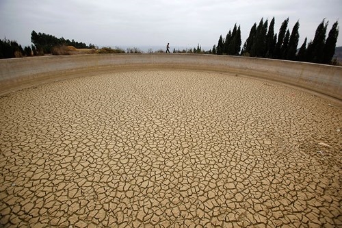 Lấy nước từ bể chứa vùng ngoại ô Suining (Tứ Xuyên, Trung Quốc). (Ảnh: Reuters)