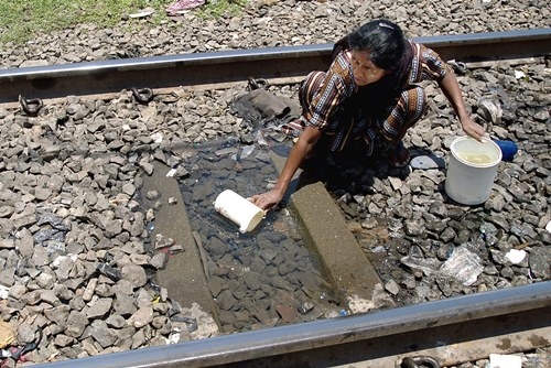 Có bao giờ bạn hình dung ra rằng, trên thế giới này lại có người tận dụng vũng nước đọng sau cơn mưa như người phụ nữ ở khu ổ chuột tại Mumbai này? (Ảnh: Reuters)
