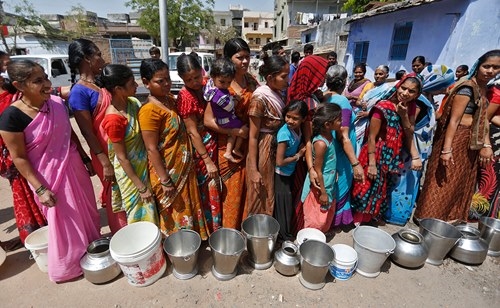 Tại ngôi làng Natwarghad thuộc miền tây Gujarat, người dân tụ tập lấy nước từ một giếng lớn. (Ảnh: Reuters)