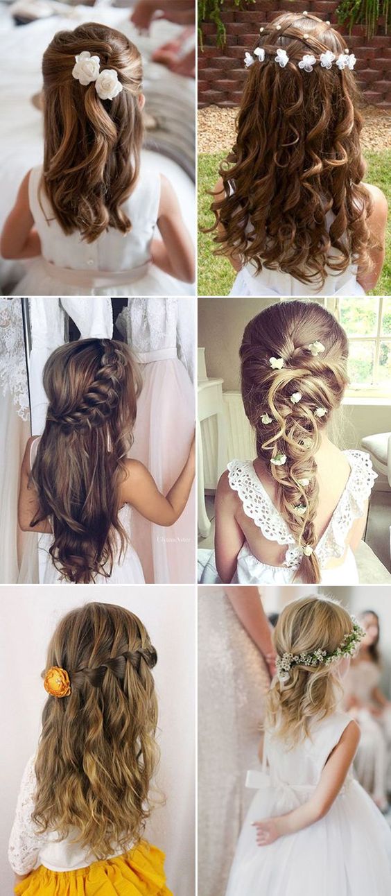Những kiểu tóc này sẽ đẹp hơn nếu tóc bé dài, trang điểm với những bông hoa nhở đính lấm tấm. Nếu tóc ngắn, bạn hãy kết hợp với dây hoa dài để trông lãng mạn hơn.