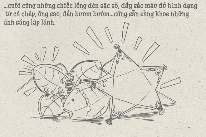 "Trung thu hồi xưa trong tôi đơn giản thế thôi, mà mỗi khi nhớ lại là cả một hồi ức đầy cảm xúc. Thèm lắm cái Tết trung thu ngày ấy" - Quang Emaketing - thành viên thực hiện tranh vẽ cho biết. |
