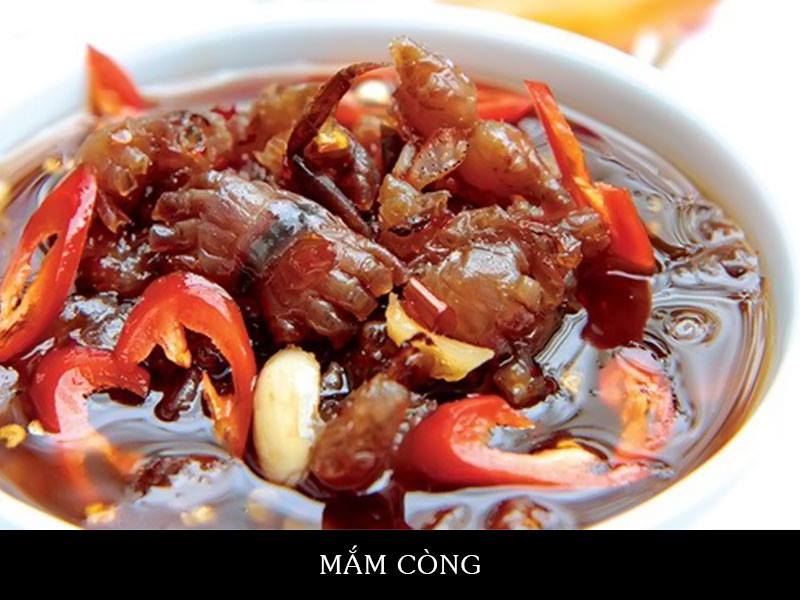 Mắm còng là một trong những đặc sản của đồng bằng sông Cửu Long. Công đoạn làm mắm còng phải tỷ mỉ, con còng làm mắm phải tươi, về dùng sơ vừa rửa sạch những chất bám trên lưng còng, sau đó tách yếm, rửa lại nước muối giảm bớt mùi tanh của còng, đem còng ra phơi nắng, lúc nào mà gặp thời tiết mát, còng bị hôi không làm được. Sau khi phơi nắng thấy còng khô teo thịt lại đem cho vào hũ, ướp gia vị vào để 45 ngày trở lên mới ăn được. Hoặc cách thức hai là không tách miêng, rửa sạch để khô bớt mùi tanh cho vào máy, bỏ ít đường, ít muối xay làm mắm gọi là mắm còng xay xù. |