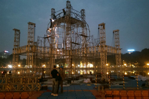 Sân khấu nổi chủ đề "quả cầu ánh sáng" đang được dàn dựng |