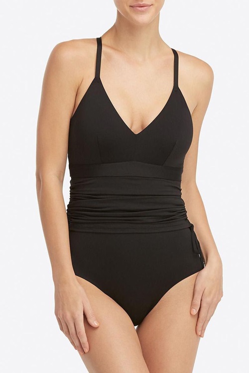 | Tuy không có quai đeo nhưng bạn đừng sợ nó sẽ bị tuột khi bơi bởi phần ngực được thiết kế khung khá chắc chắn. Kết hợp với những ly vải xếp từ bụng xuống hông sẽ giúp tạo dáng tốt hơn cho người mặc. |