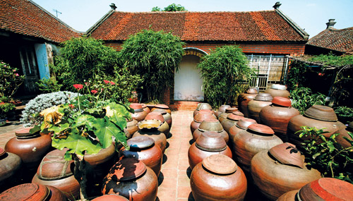 | Với nước tương ngon, người làng Đường Lâm đã sáng tạo ra những món ăn ngon. Không chỉ có cà ngâm tương, củ cải ngâm tương, người dân làng cổ còn có đặc sản “tuyệt chiêu” là thịt lợn luộc ngâm tương. |