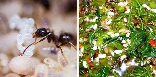 | Canh trứng kiến: Ở Đông Nam Á, trứng kiến thường được sử dụng nấu thành canh. Được biết, sau khi chế biến nó có vị chua chua |