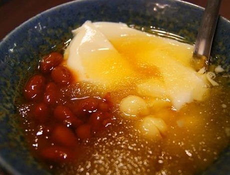 | Táo phớ kiểu Tainan được làm từ đậu nành và chan nước đường phèn, thêm đậu đỏ, đậu xanh hay khoai sọ. |