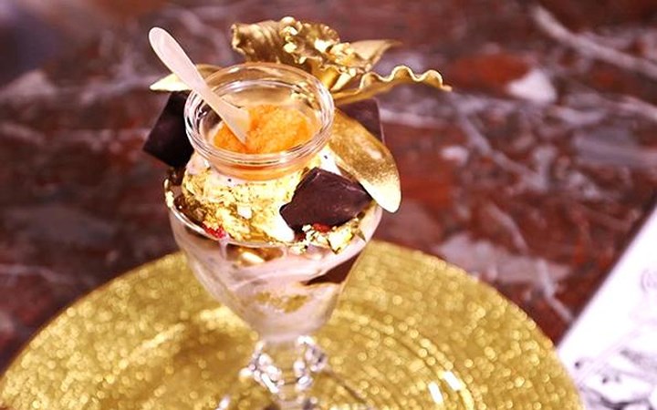 Chiếc bánh kem vô cùng đặc biệt này có giá lên đến 25.000 USD (hơn 500 triệu đồng) món bánh kem được làm từ những nguyên liệu hảo hạng và được trang trí bằng vàng lá và kim cương.