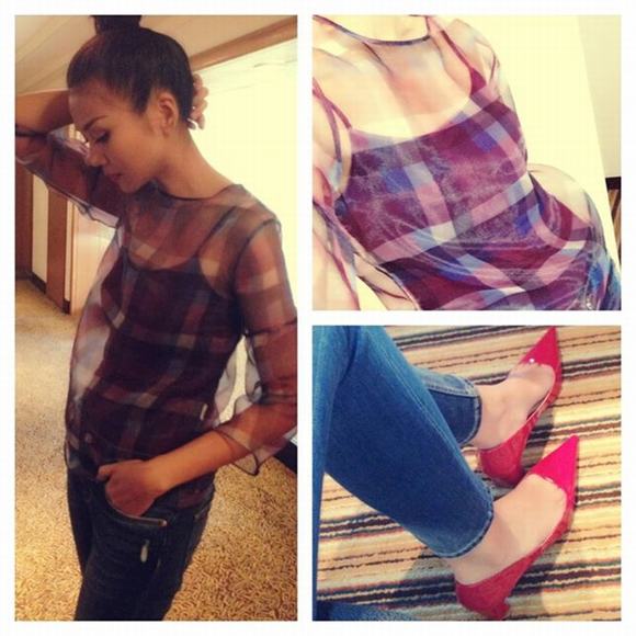 | Cũng vẫn là áo voan Zara giống của Thanh Hằng, cô ca sĩ cá tính "mượn" cách mix đồ trong look book của hãng thời trang đến từ Tây Ban Nha với cả cây áo và váy Zara. |