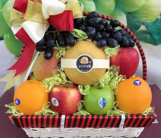 - Giỏ trái cây: Giỏ trái cây là một lựa chọn không tồi khi vừa có tính đẹp mắt như hoa lại có tính thiết thực cao, không sợ trùng lặp. Hãy chọn lựa những loại trái cây.
