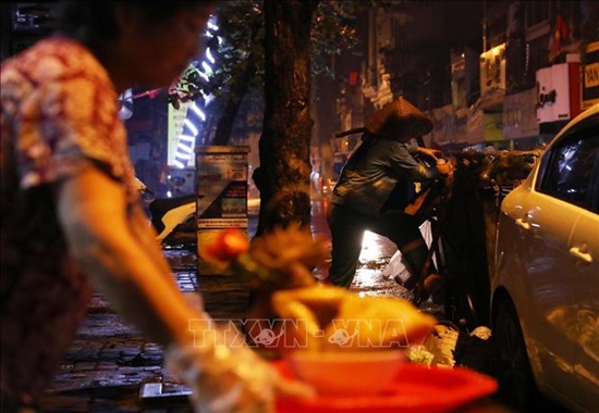 Trên tuyến phố Bạch Mai, quận Hai Bà Trưng, một công nhân vệ sinh đang cần mẫn làm công việc của mình. |