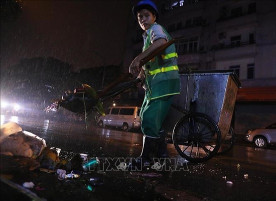 Những người công nhân môi trường đô thị làm việc không quản ngại trời mưa rét. |