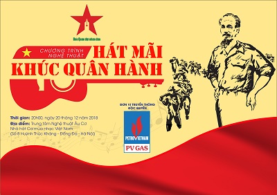Đêm nghệ thuật “Hát mãi khúc quân hành” hứa hẹn sẽ mang đến cho khán giả những tác phẩm nghệ thuật đặc sắc. Chương trình rất vinh dự có sự đồng hành của Tổng công ty Khí Việt Nam – CTCP (PVGAS).