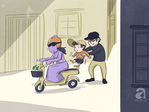 Hoặc những kẻ bắt cóc có thể giả vờ va vào bạn rồi lợi dụng để bắt cóc con bạn. Do đó, các bậc phụ huynh cần lưu ý không được hoảng loạn lơ là trước bất cứ chuyện gì xảy ra. Hãy luôn giữ chặt con mình để tránh bị bọn bắt cóc lợi dụng dắt đi.