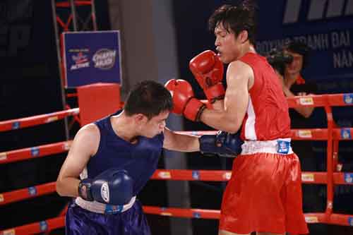 Văn Chung (đỏ) đang là ứng cử viên vô địch hạng cân 60kg |