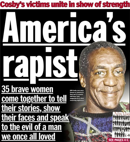 Năm 2015, nam diễn viên 78 tuổi Bill Cosby vướng vào vụ bê bối tình dục lớn nhất lịch sử làng giải trí Hoa Kì khi có tới 35 người phụ nữ cùng lộ diện trên báo vào tháng 7, tố cáo ông đã đánh thuốc mê, thuốc kích dục và ma túy để quan hệ với họ trong hàng chục năm qua. Con số nạn nhân lên tiếng tăng lên đến hơn 50 người vào cuối năm 2015. Tờ Dailynews thậm chí gọi Cosby là "Kẻ hiếp dâm của nước Mỹ".