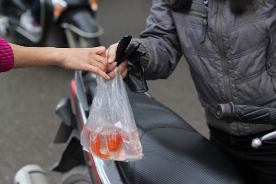 Người dân mua cá chép đỏ làm lễ cúng Táo Quân - Ảnh: VTV |