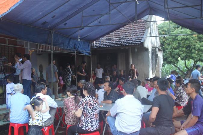 Rất đông người thân, bà con hàng xóm đến chung vui cùng gia đình anh Phương. |