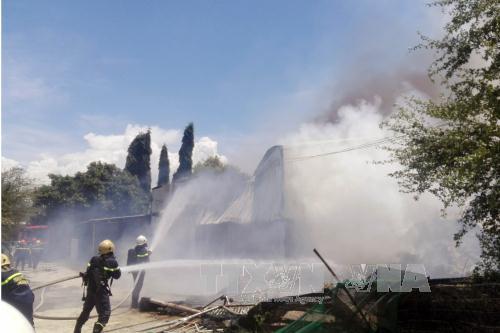 Nhà máy chế biến mía hơn 1.000 mét vuông ở Ninh Thuận đã thị thiêu rụi trong ngọn lửa.