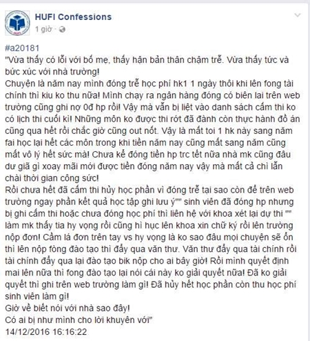 Thông báo gia hạn cho các sinh viên nợ học phí học kì I. (Ảnh: Zing.vn) |