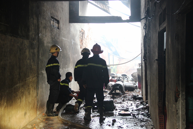 Thời điểm xảy ra vụ nổ bên trong có hơn 100 bình gas. Đám cháy đã làm toàn bộ nhà kho rộng hơn 100 m2 gần như bị thiêu rụi.