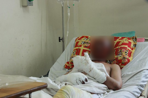 ![]() Anh H. cho biết vừa cho thép vào lò luyện thì bị nổ. (Ảnh: Báo Người lao động). |