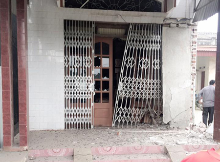 Vụ nổ khiến phần tường phía ngoài ngôi nhà nứt toác, cửa xếp bị bẻ cong và đổ vỡ một số đồ đạc bên trong nhà.