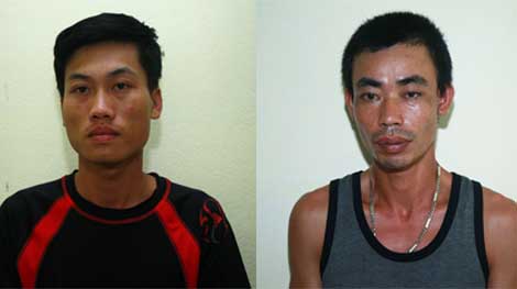 Nguyễn Hoàng Anh và Hoàng Văn Dương tại cơ quan công an. |