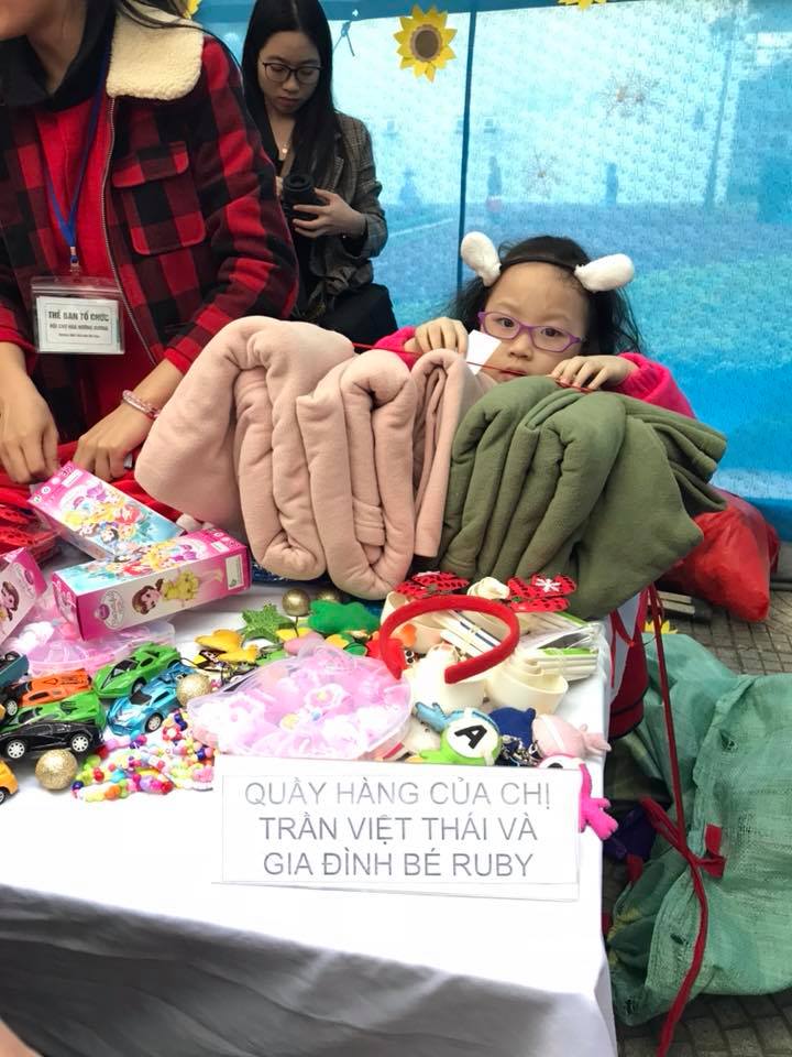Hàng trăm chiếc chăn ấm, 120 đôi tất, gần trăm đôi găng tay len, 100 đồ gia dụng Lock and Lock, 100 cân cam sành, 500hộp sữa và hàng nghìn sản phẩm khác với tổng giá trị 50 triệu đồng đều được bán với giá 1.000 đồng/sản phẩm. Tổng số tiền thu được 3 triệu cho 3.000 sản phẩm được gửi tặng Quỹ hỗ trợ bệnh nhân ung thư của Viện K cơ sở 3.