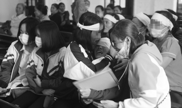 Chị Tr. khóc ngất khi nghe Hoàng thuật lại quá trình phạm tội của mình. |
