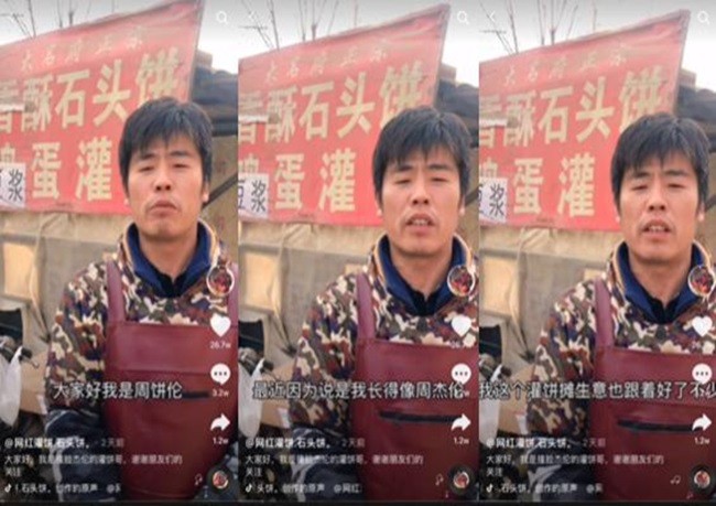Chàng trai họ Pai (Hà Bắc, Trung Quốc) nổi tiếng trên mạng xã hội với ngoại hình giống hết ca sĩ họ Châu và vừa thoăn thoắt rán bánh, vừa hát ca khúc "Waiting for you" nổi tiếng của ca sĩ này. Thấy thích thú, vị khách hàng quay một video ngắn và chia sẻ lên mạng xã hội, thu hút hơn 10 triệu lượt xem và lọt top tìm kiếm.