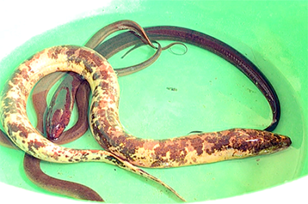 Nông dân miền Tây bắt được lươn vàng, có đốm đen kỳ lạ. Ảnh: VnExpress |