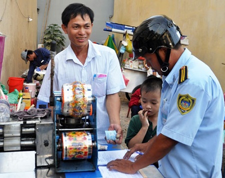 Người đàn ông bán nước mía được nữ chủ tịch phường đóng phạt hộ. Ảnh: Dân Việt |