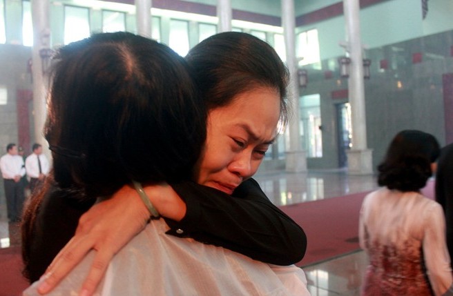 | Bạn bè, đồng nghiệp không kìm nổi đau xót phút tiễn đưa bà Võ Thị Thắng (Ảnh Dân trí). |