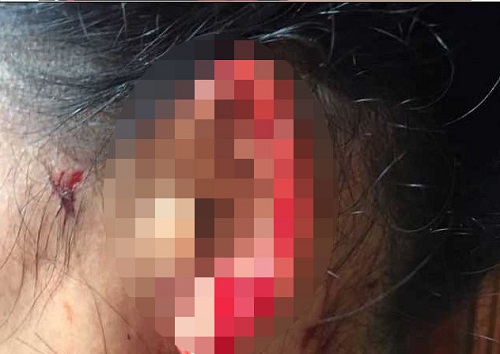 Bà Thức bị bắn vào tay sau đó bị hành hung chảy máu ở tai. Ảnh: VietNamNet |