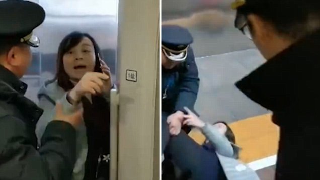 Nhân viên ga tàu đã cố đẩy Luo ra khỏi nơi đó để đóng cửa tàu nhưng cô ta nắm quá chặt nên không được.
