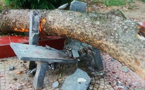 Khi ngồi tại ghế đá sân trường chơi thì bất ngờ một cành cây to gãy rơi trúng vào người cô giáo này khiến nạn nhân tử vong và chiếc ghế đá vỡ làm đôi.