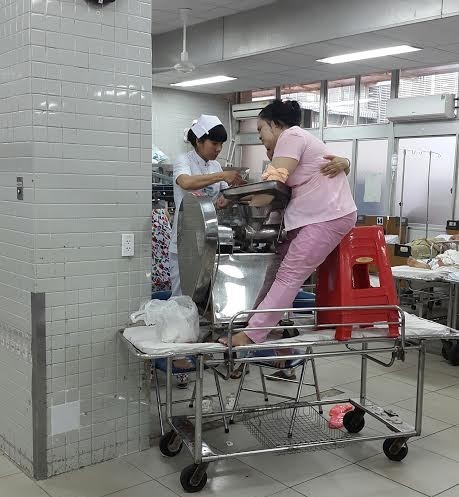 (ĐSPL) - Chị L được chuyển đến bệnh viện Chợ Rẫy (TP.HCM) trong tình trạng tay trái bị dính chặt vào chiếc máy xay thịt loại lớn.