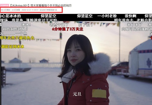 Chỉ trong 6 phút lên sóng cô nàng đã có hơn 30 nghìn người theo dõi và con số này tăng theo cấp số nhân qua mỗi phút. Tính từ thời điểm ra mắt vlog đầu tiên cho đến chưa đầy một ngày sau, Vương Băng Băng đã có hơn 6,8 triệu lượt xem và 1,6 triệu người theo dõi. |