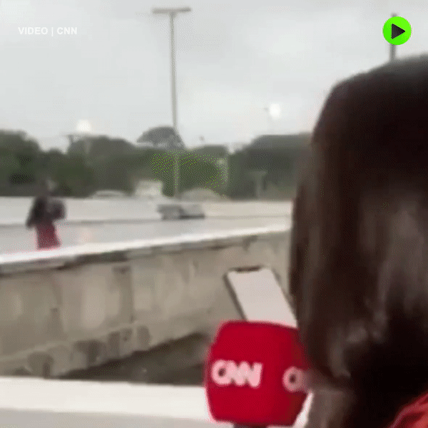 Nữ phóng viên Bruna Macedo của đài CNN vừa có trải nghiệm đáng sợ khi dẫn trực tiếp. |