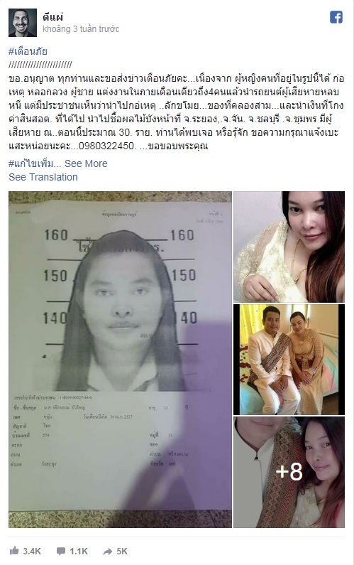Theo tờ Bưu điện Bangkok và một số các phương tiện truyền thông khác của Thái Lan, sau khi thông tin trên được đăng tải trên Facebook, một số người đàn ông đã tới đồn cảnh sát và nói rằng mình cũng là nạn nhân của vụ lừa hôn.